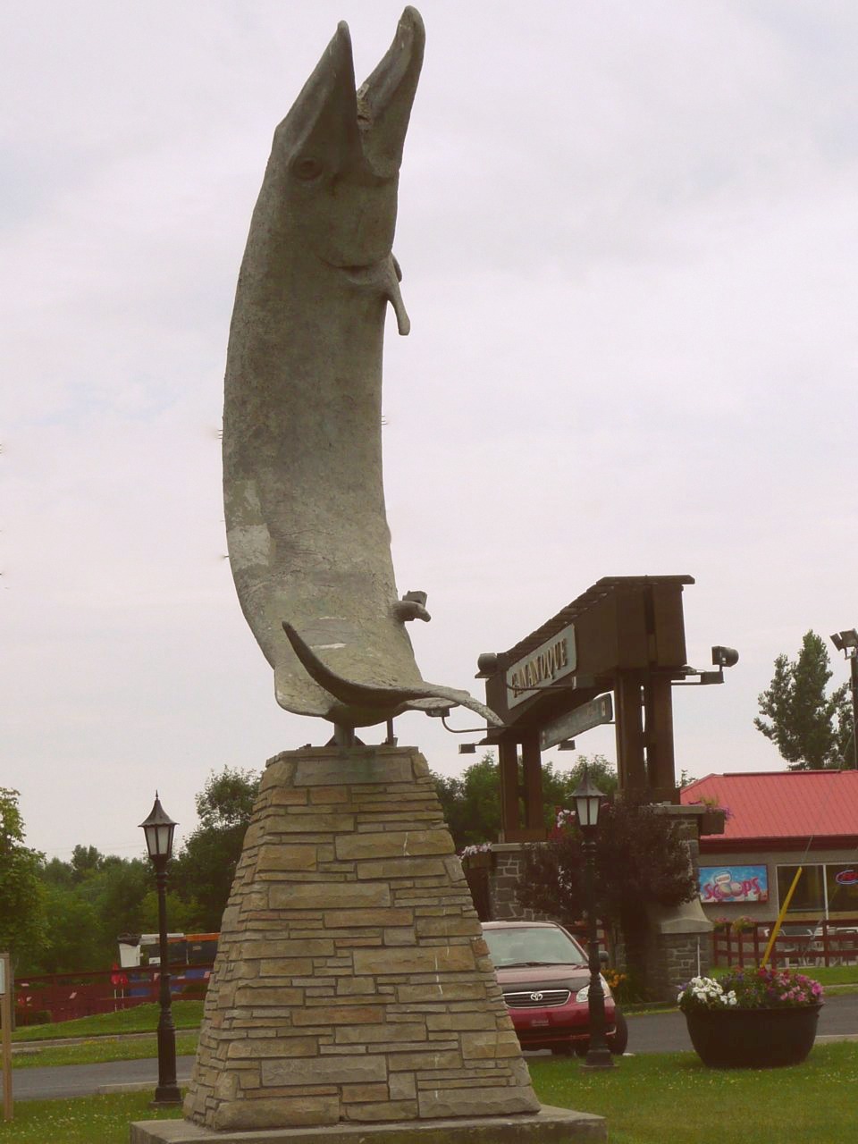 This Leaping Muskie statue celebrates the area on the St Lawrence River as a top muskellunge (muskie) area.